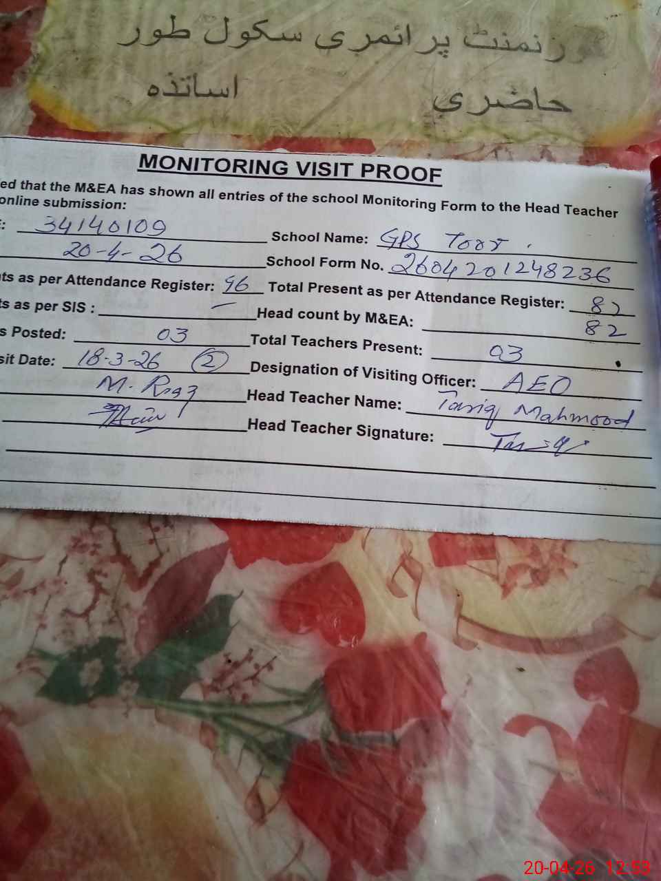 | EMIS Code: 34140109 | Name of School: GPS TOOR | |||