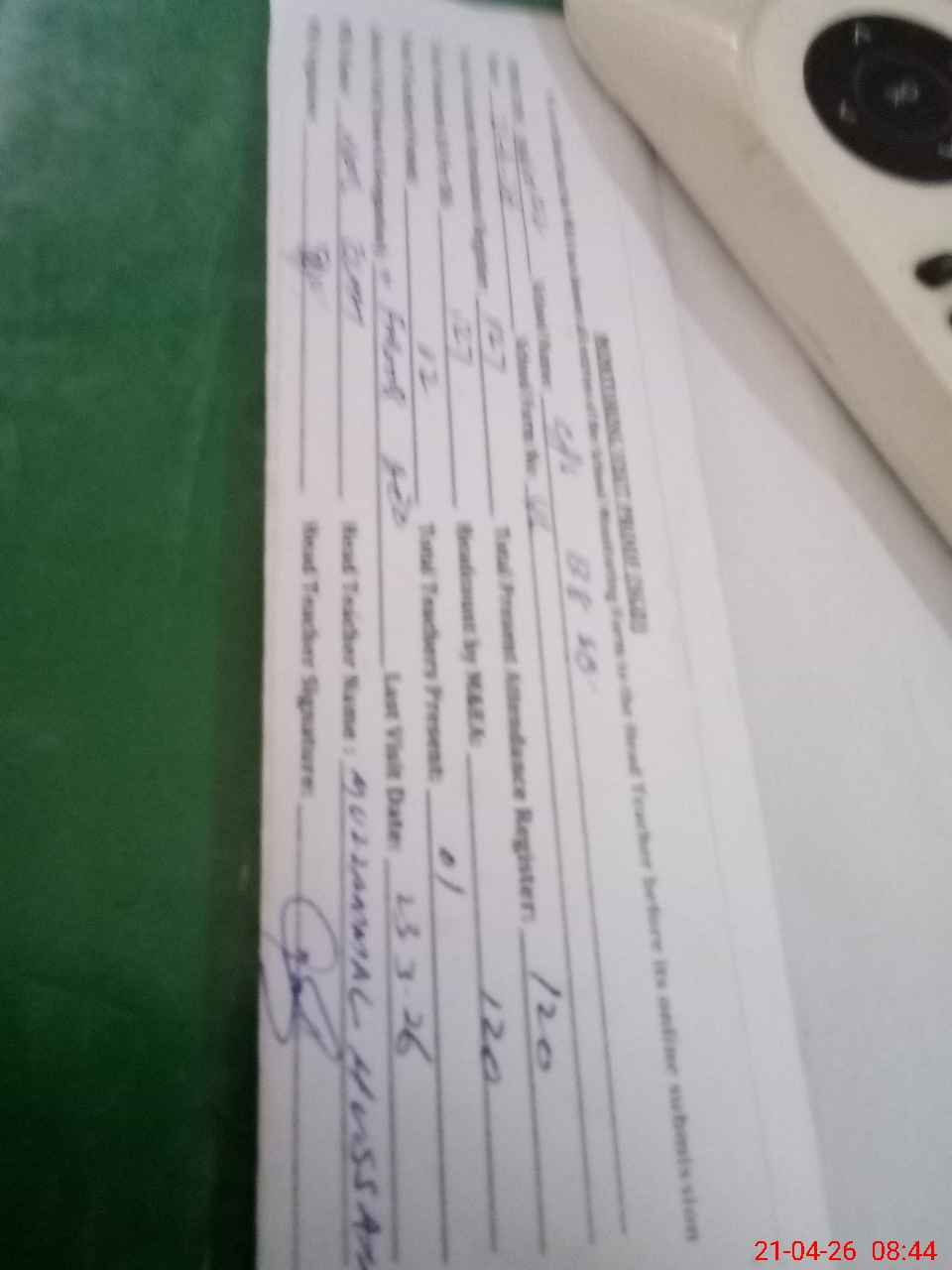 | Attendance Register | Head Teacher | MEA with School | Visit Proof |