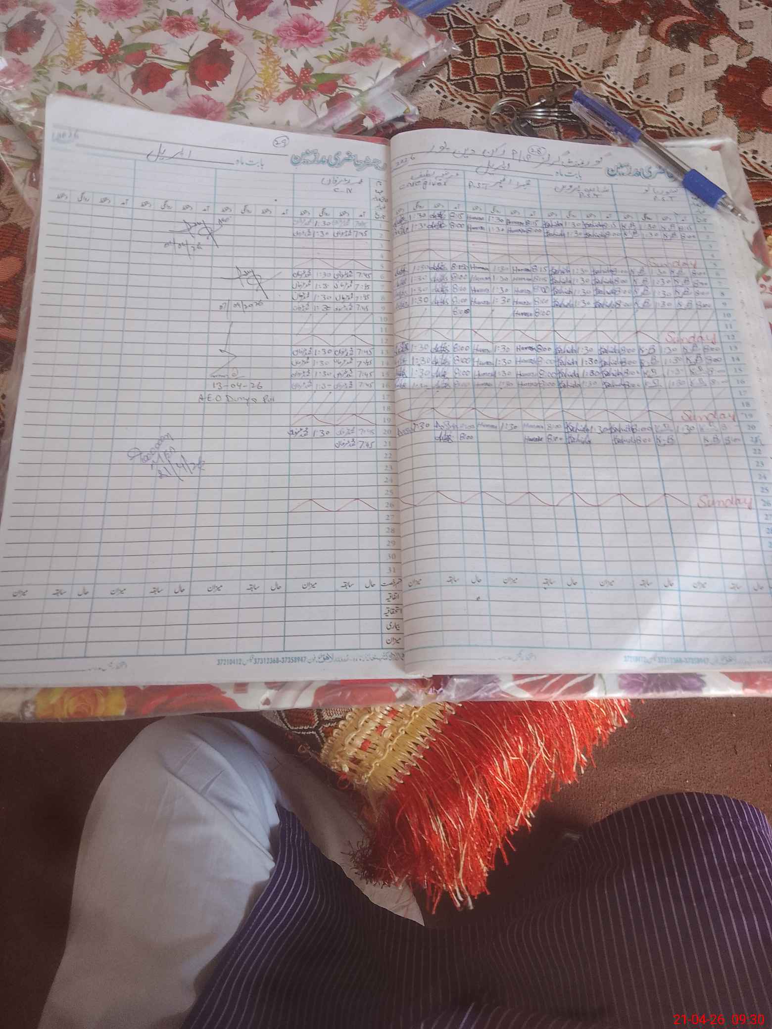 | CNIC | Full Name | Designation | R/C | Absence During Last Calender Month |