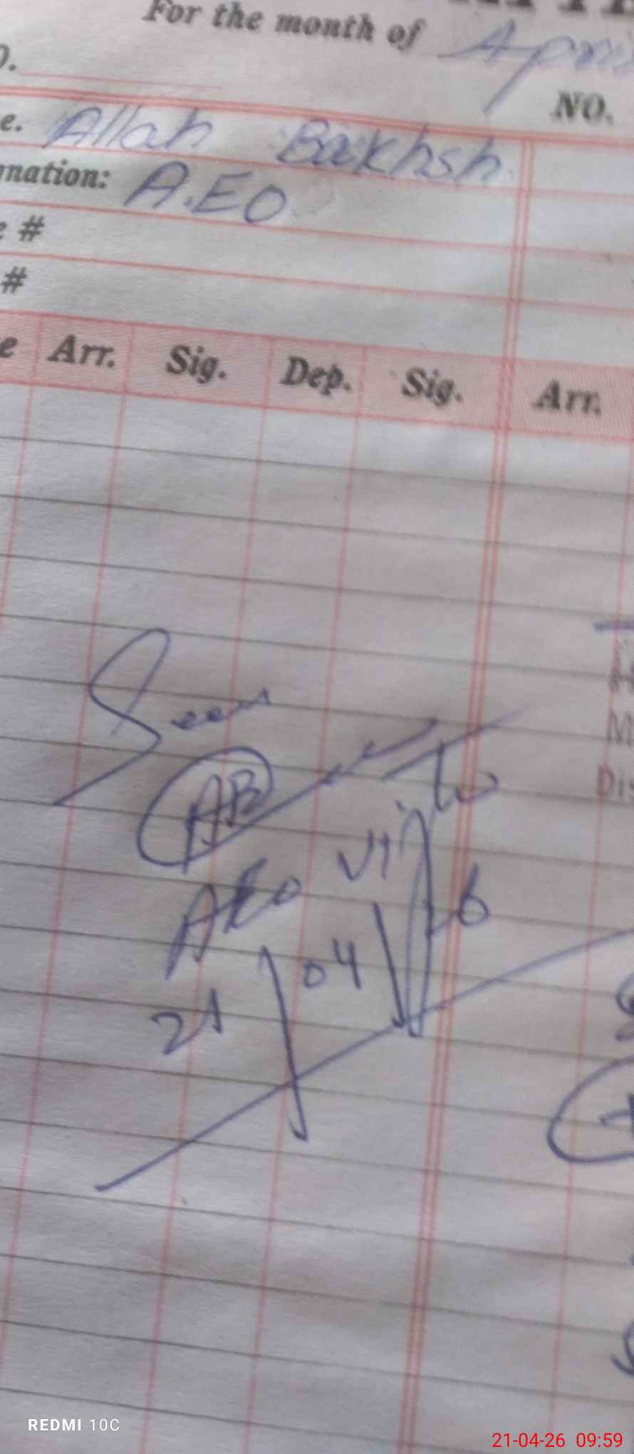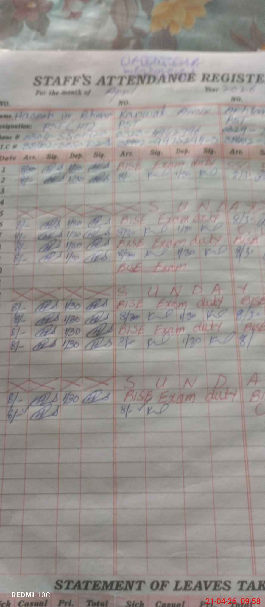 | Name: HA**** URRE**** Designation: (School Headmaster's/Headmistress's) PST Phone/Cell Number: 03**** |