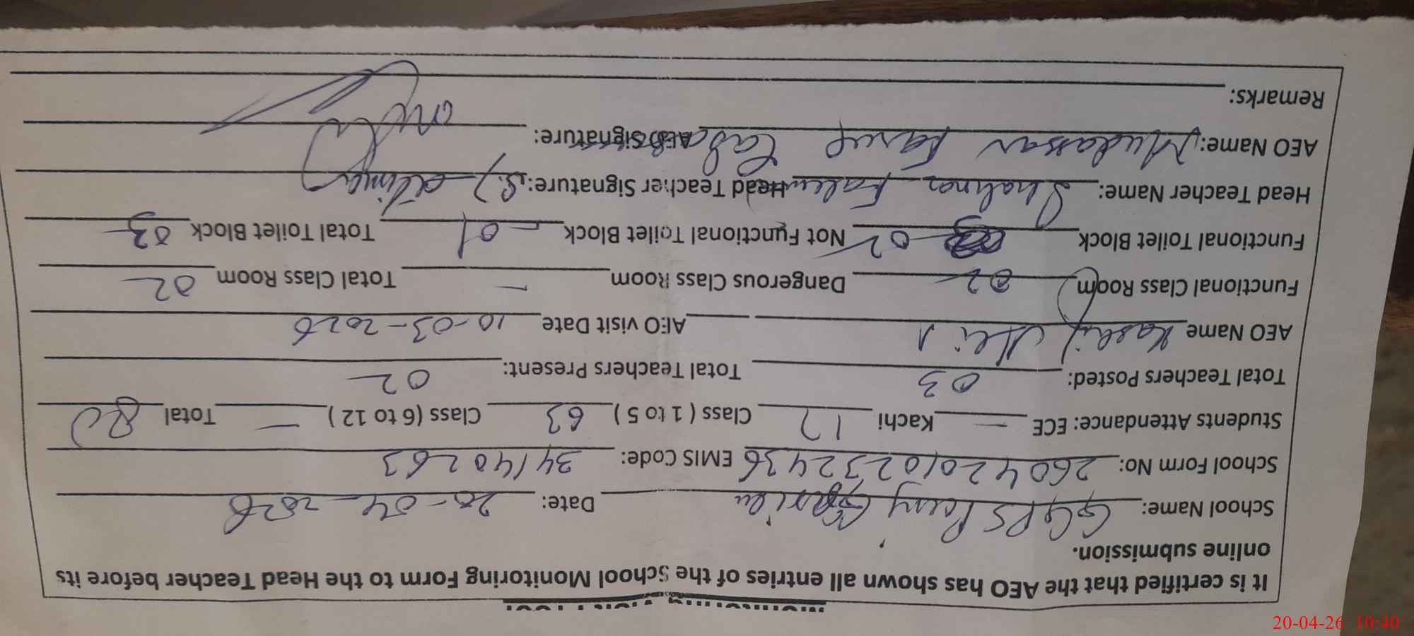 | Certified that this School was Inspected by the Undersigned MEA/DMO Today and the Information Stated Above is as Per Record. | |||||