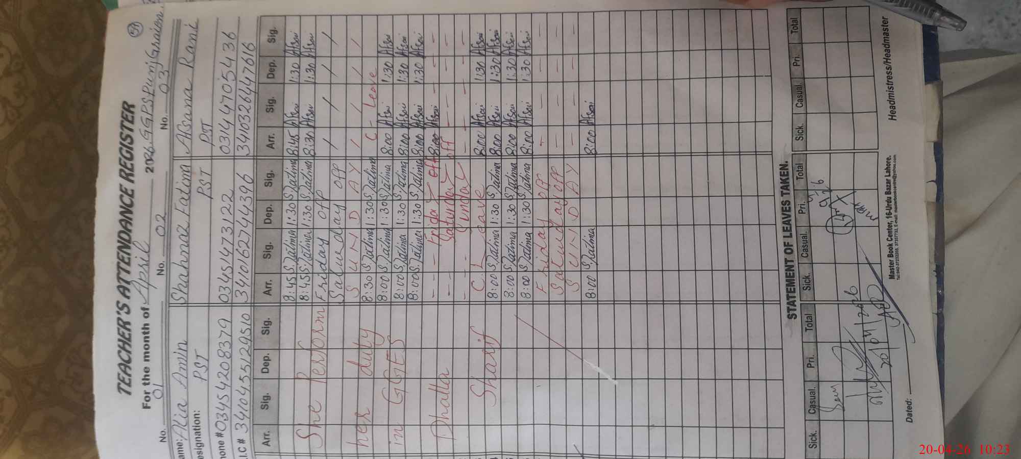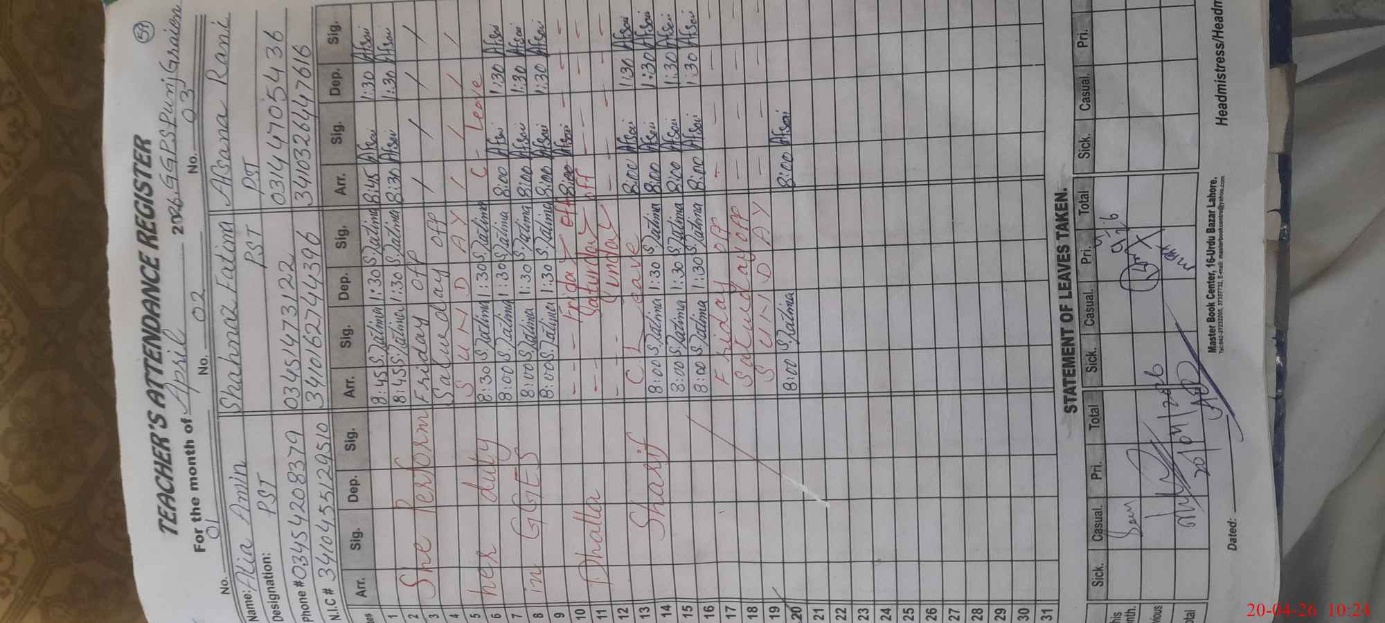 | Name: AT**** AM**** Designation: (School Headmaster's/Headmistress's) PST Phone/Cell Number: 03**** |
