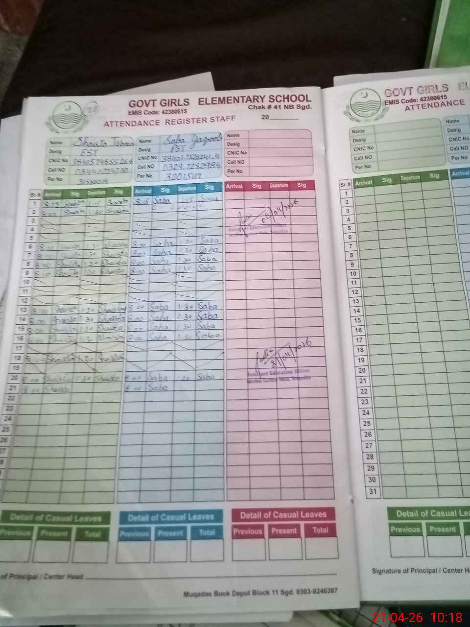 | Name: AB**** AL**** Designation: (School Headmaster's/Headmistress's) S.S.T.(Arts) Phone/Cell Number: 03**** |