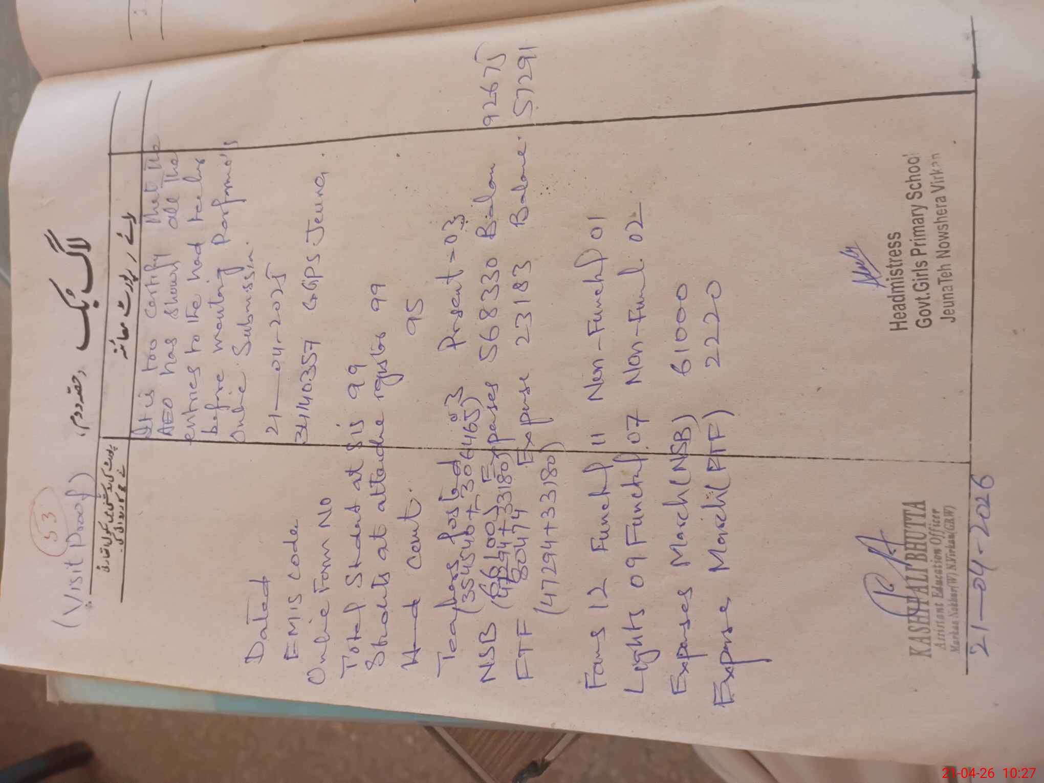 | District: GUJRANWALA | Tehsil: NOSHERA VIRKAN | Markaz: NOKHAR - FEMALE | Level: Primary | |