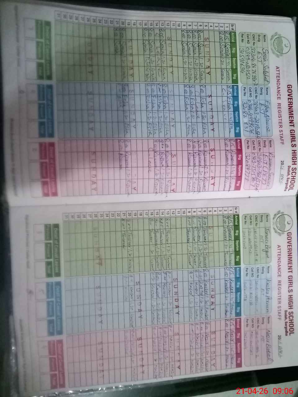 | CNIC | Full Name | Designation | R/C | Absence During Last Calender Month |