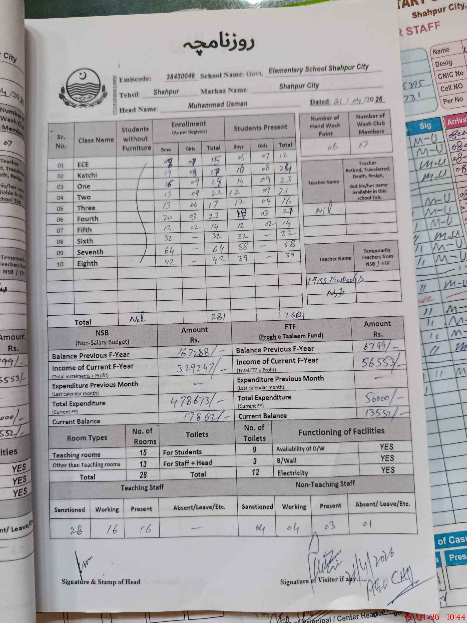 | EMIS Code: 38430046 | Name of School: GES SHAHPUR CITY | |||