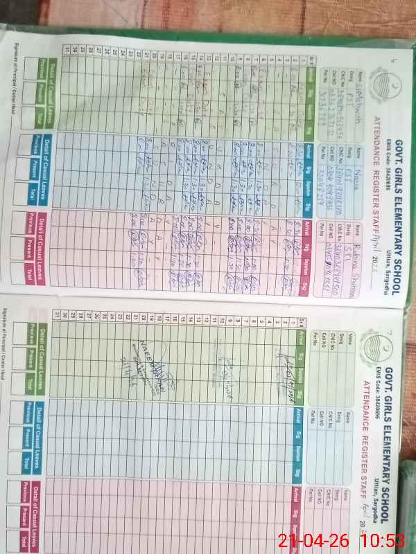 | CNIC | Full Name | Designation | R/C | Absence During Last Calender Month |
