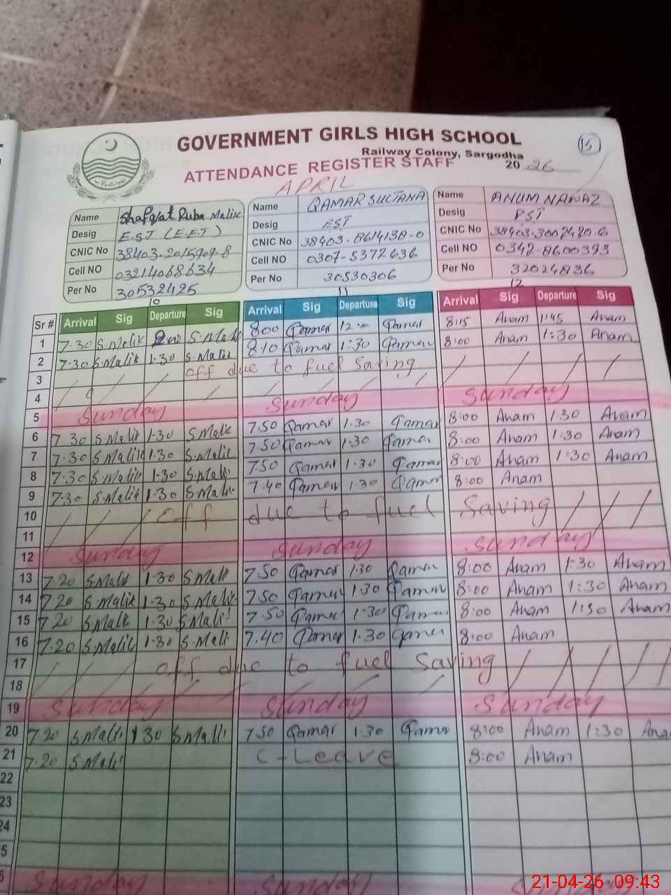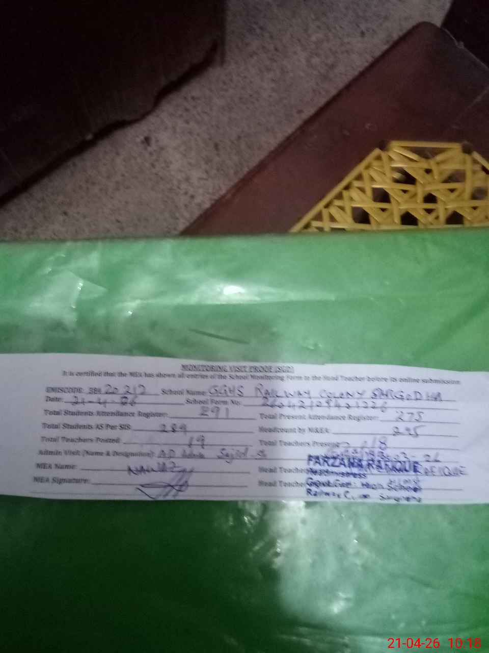 | EMIS Code: 38420212 | Name of School: GGHS RAILWAY COLONY SARGODHA | |||