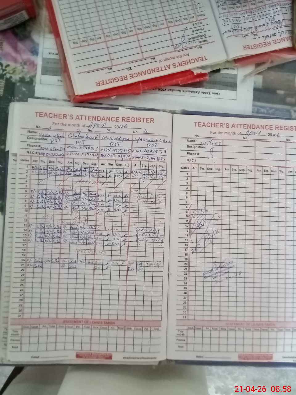 | Name: SA**** UL**** Designation: (School Headmaster's/Headmistress's) PST Phone/Cell Number: 03**** |