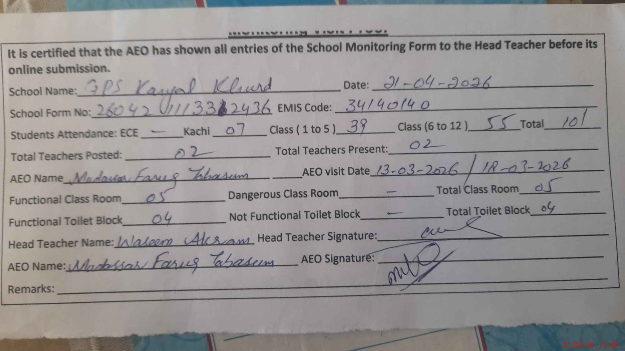 | EMIS Code: 34140140 | Name of School: GPS KARYAL KHURD | |||