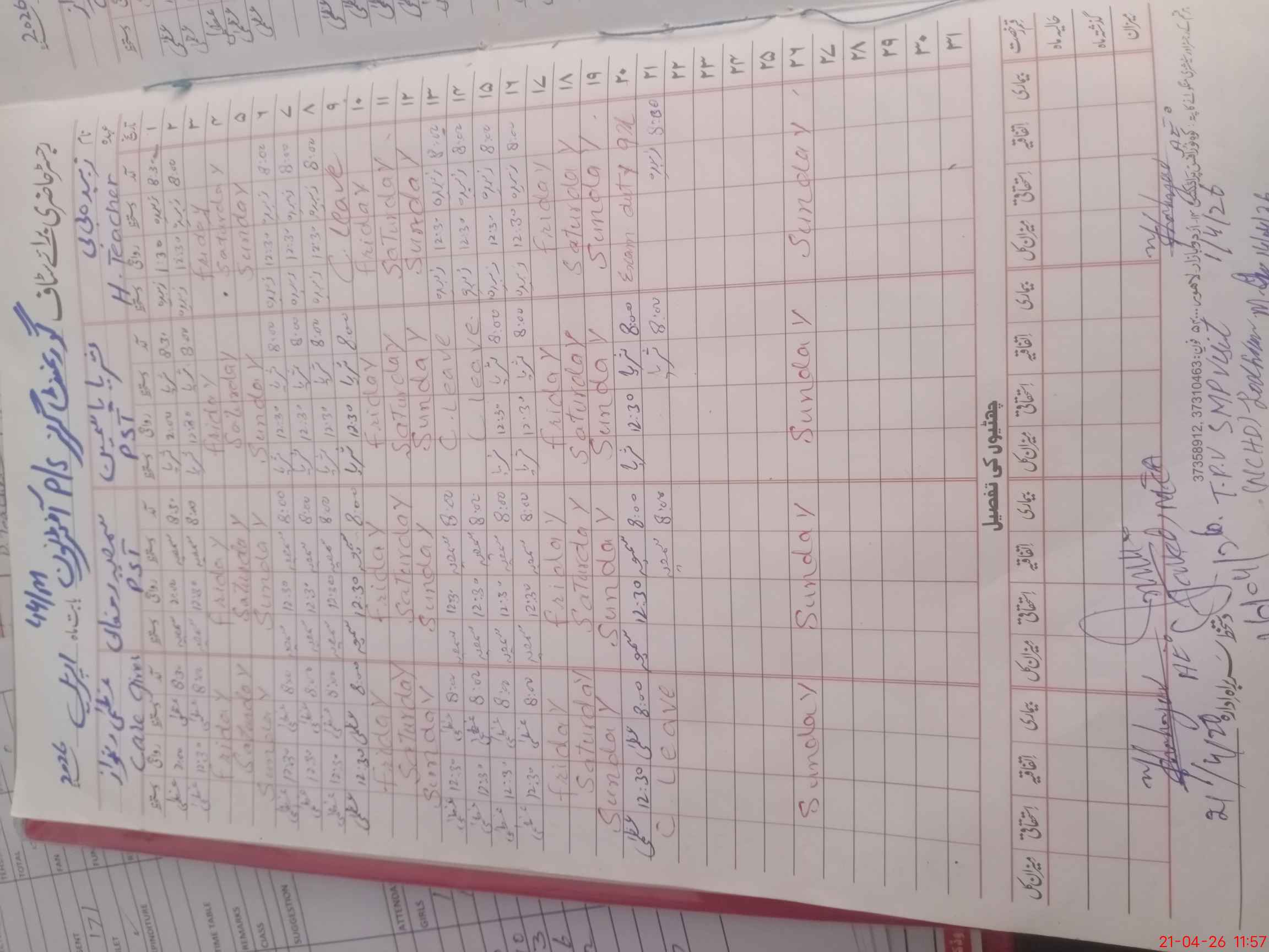 | Name: Zu**** Bi**** Designation: (School Headmaster's/Headmistress's) PTC/JV Phone/Cell Number: 03**** |