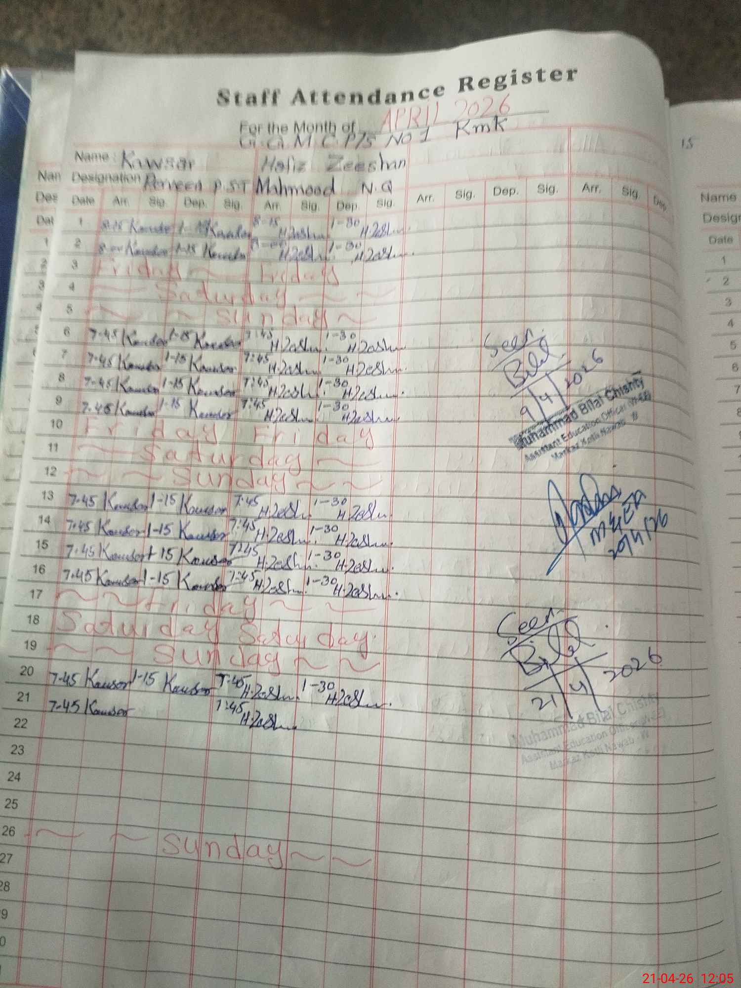| CNIC | Full Name | Designation | R/C | Absence During Last Calender Month |