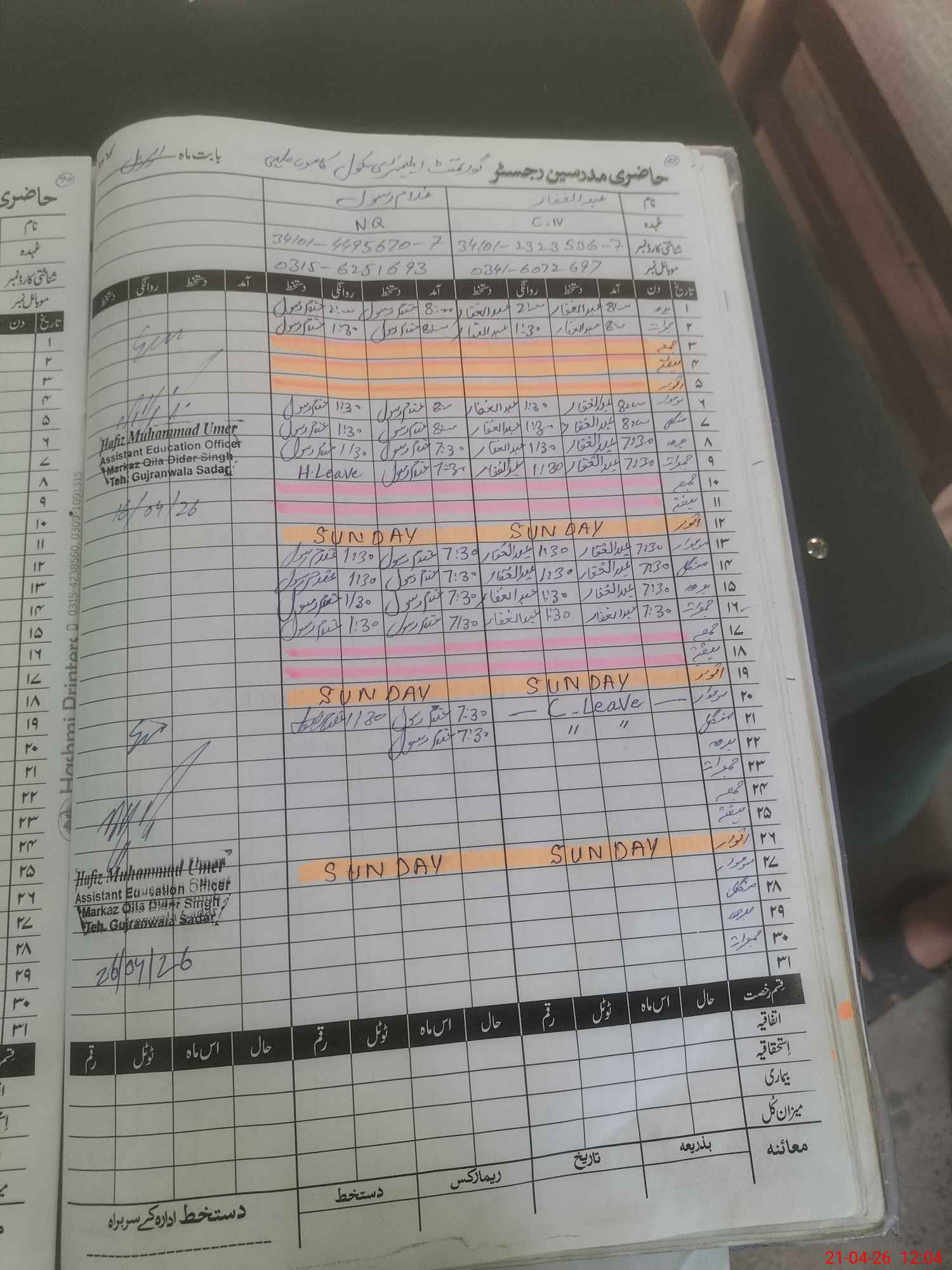 | Name: AB**** SA**** MA**** Designation: (School Headmaster's/Headmistress's) S.S.T Sci Phone/Cell Number: 03**** |