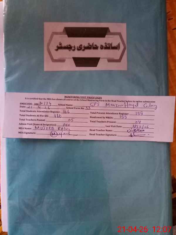 | EMIS Code: 38410134 | Name of School: GPS MANZOOR HAYAT COLONY BHALWAL | |||