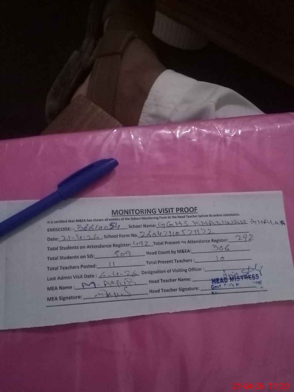 | EMIS Code: 36610054 | Name of School: GGHS KHANWAH GHALWAN | |||