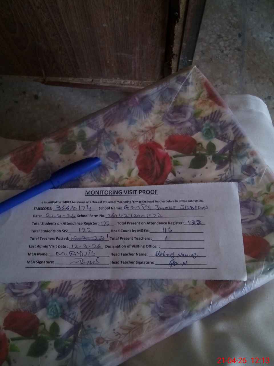 | EMIS Code: 36610174 | Name of School: GMPS JHOKE JANAN | |||