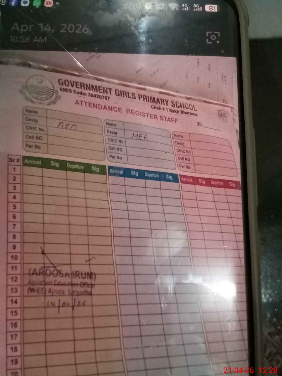 | Name: Ma**** Az**** Designation: (School Headmaster's/Headmistress's) PST Phone/Cell Number: 03**** |