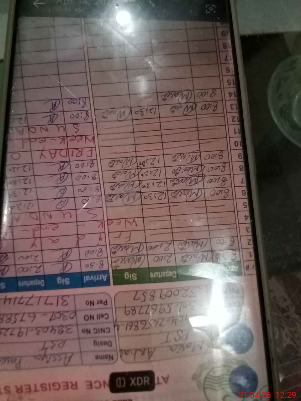 | CNIC | Full Name | Designation | R/C | Absence during last cal. month |