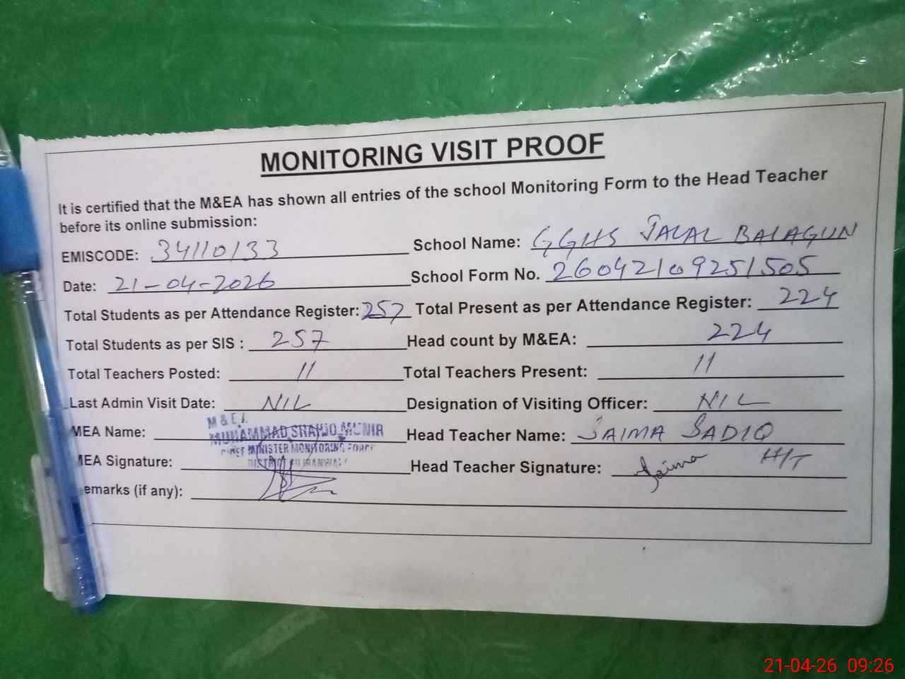 | EMIS Code: 34110133 | Name of School: GGHS JALAL BALAGAN | |||
