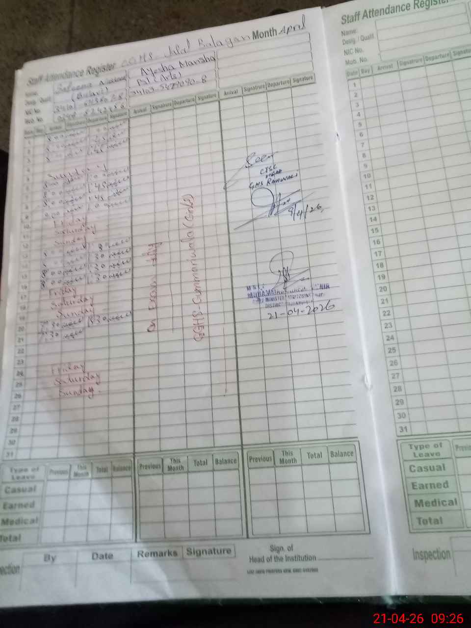 | Monitoring Date: 21-04-2026 | Start Time: 21-04-2026 08:32 AM | End Time: 21-04-2026 09:26 AM | Name of MEA: S-**** Sh**** Mu**** | |