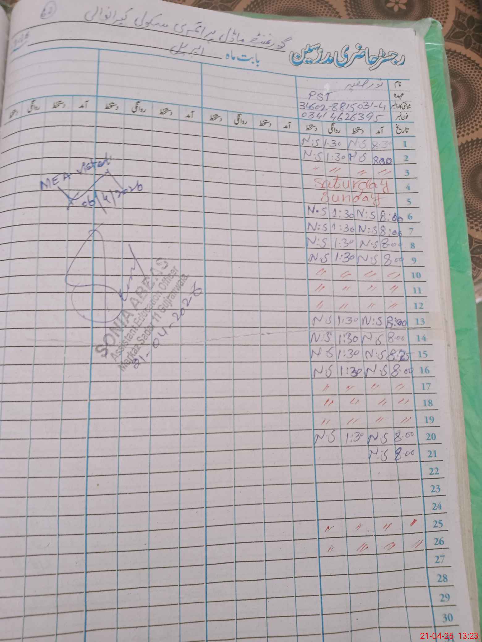 | Name: BU**** Designation: (School Headmaster's/Headmistress's) PST Phone/Cell Number: 03**** |