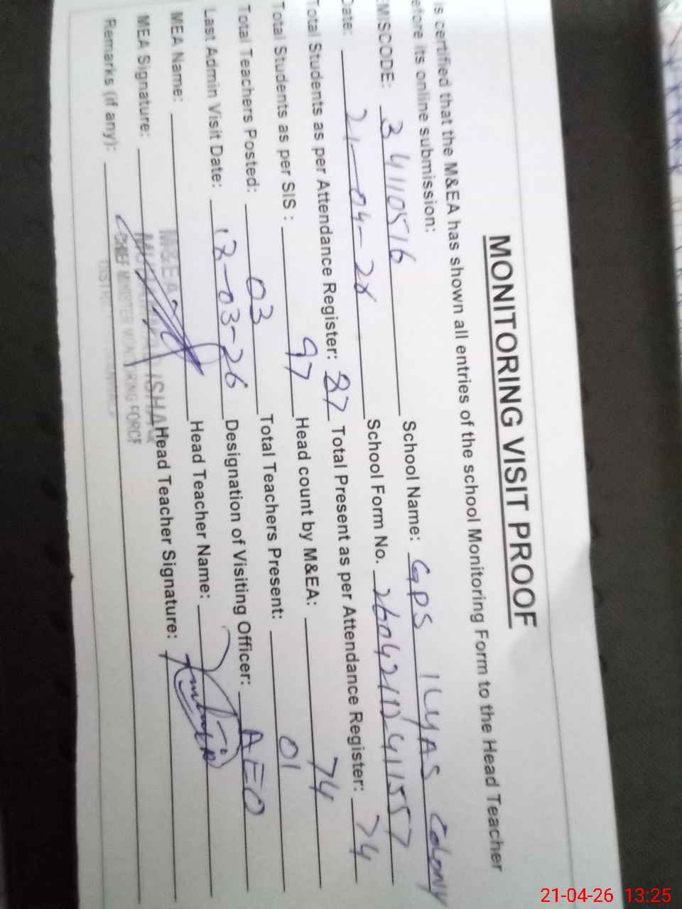 | EMIS Code: 34110516 | Name of School: GPS ILYAS COLONY | |||