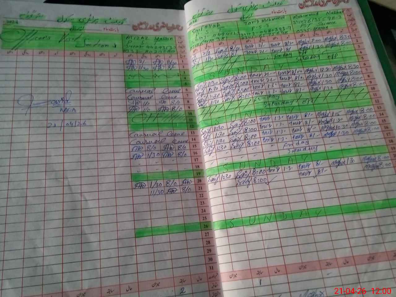 | CNIC | Full Name | Designation | R/C | Absence During Last Calender Month |