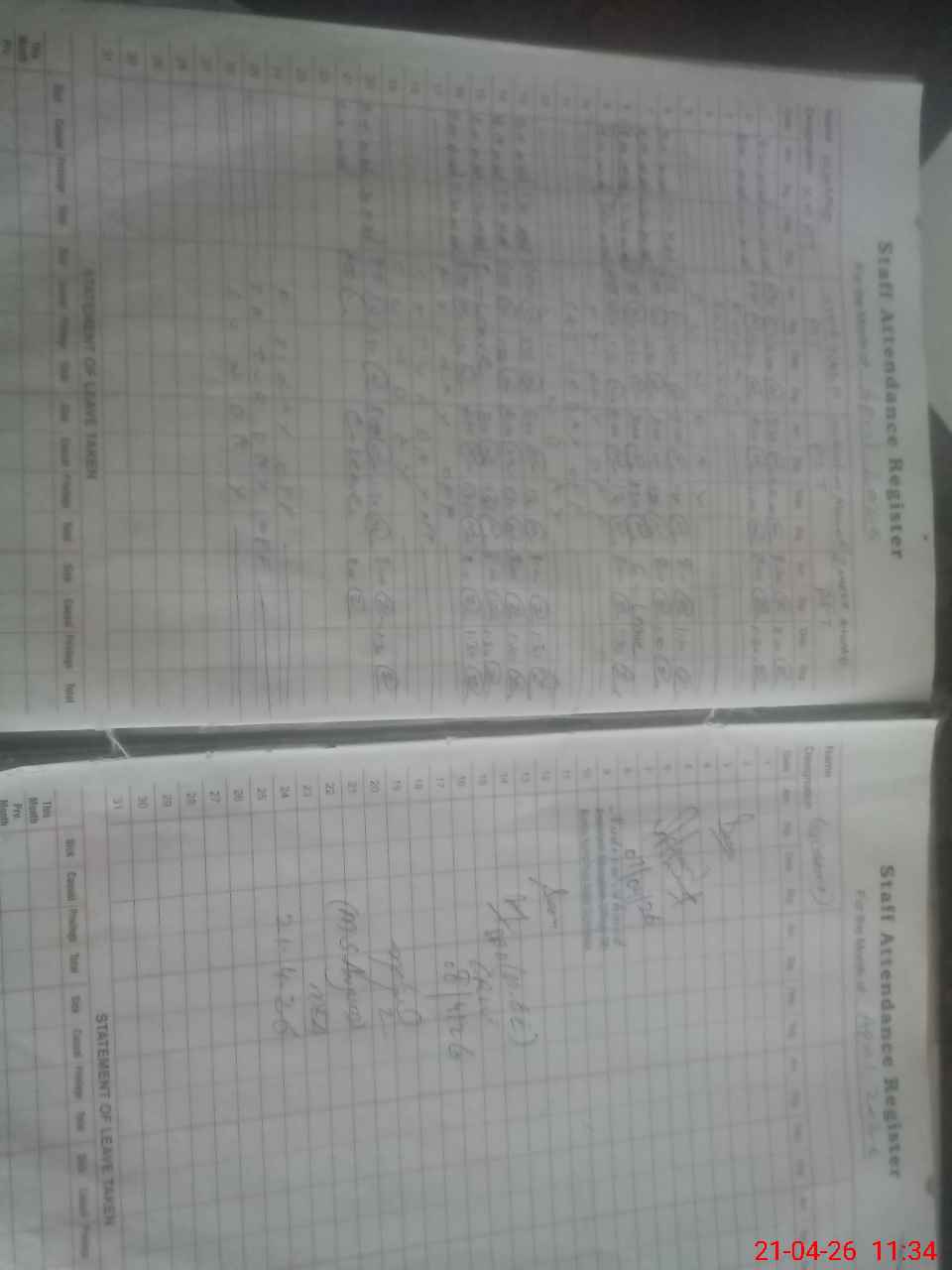 | Leave | Duty | Absent | Maternity | Medical | Ex- Pak |