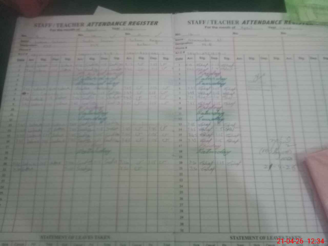 | Name: AQ**** NO**** Designation: (School Headmaster's/Headmistress's) S.S.T.(GEN) Phone/Cell Number: 03**** |