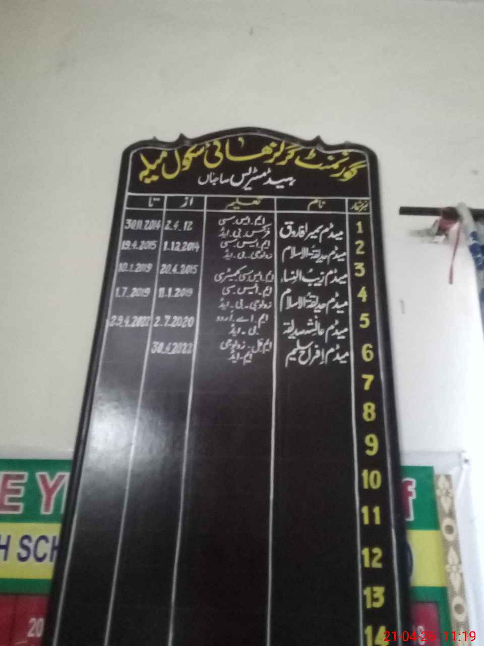 | Name: If**** Sa**** Designation: (School Headmaster's/Headmistress's) SST Phone/Cell Number: 03**** |