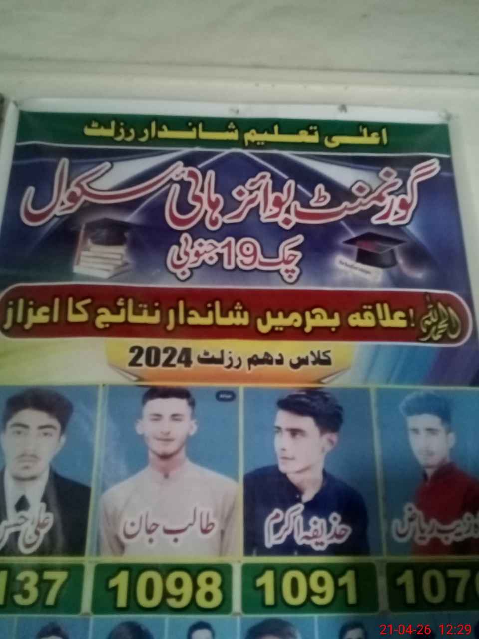 | EMIS Code: 38460017 | Name of School: GHS CHAK NO.19 SB | |||