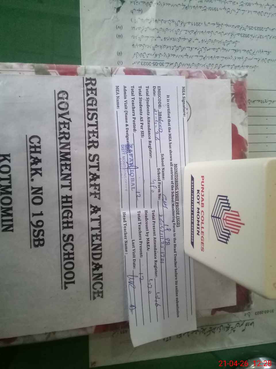 | District: SARGODHA | Tehsil: KOT MOMIN | Markaz: SECONDARY-WING | Level: High | |