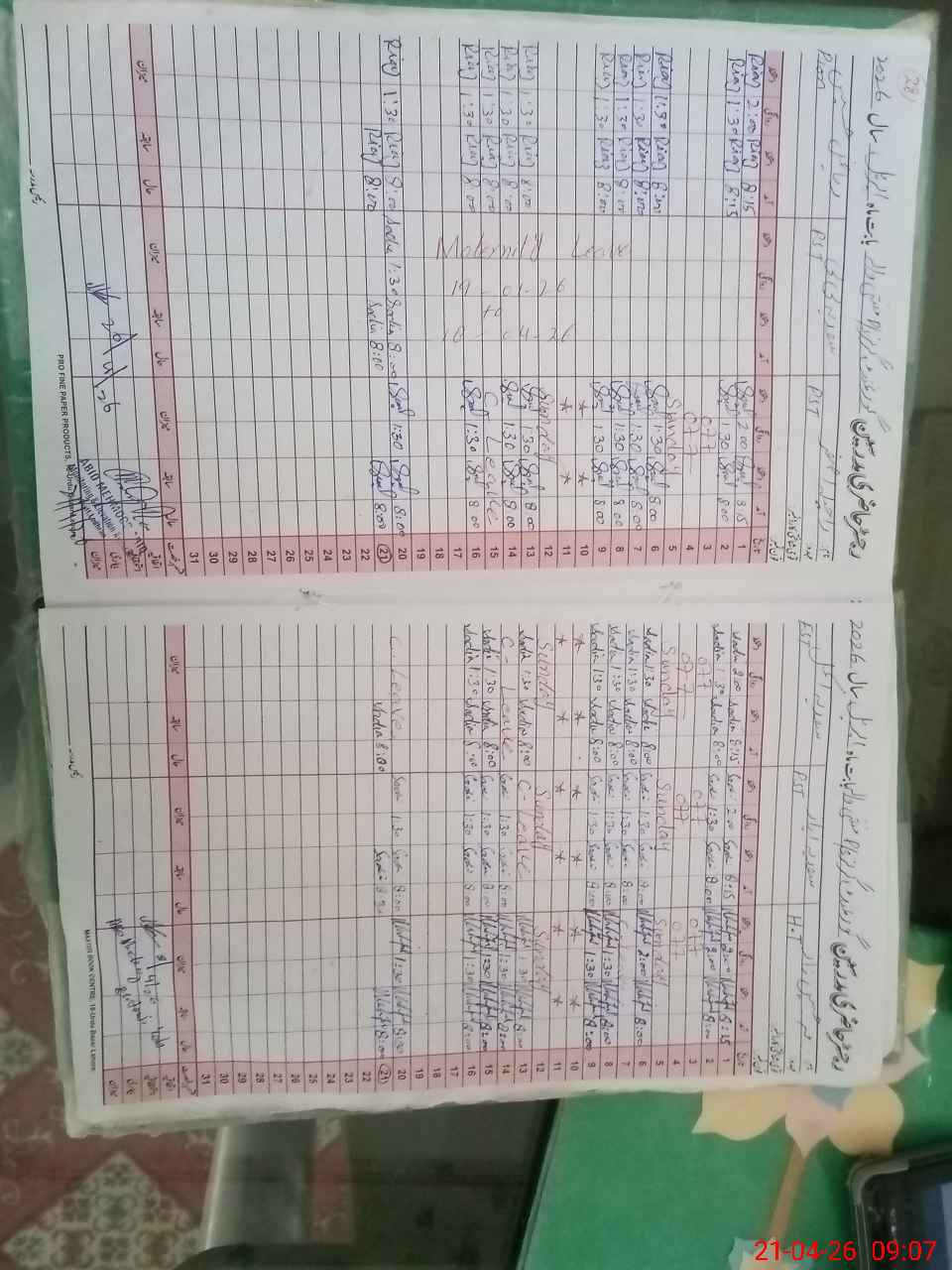 | CNIC | Full Name | Designation | R/C | Absence During Last Calender Month |