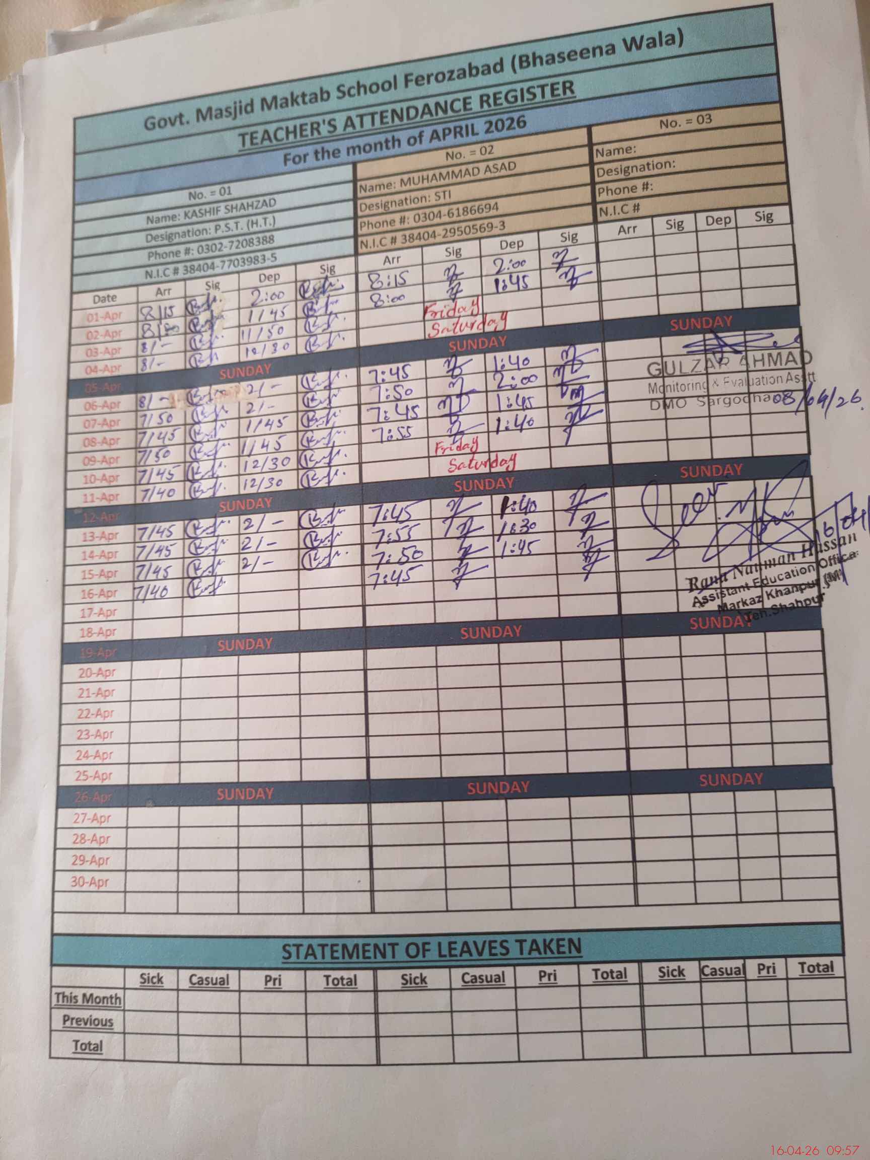| Name: KA**** SH**** Designation: (School Headmaster's/Headmistress's) PST Phone/Cell Number: 03**** |