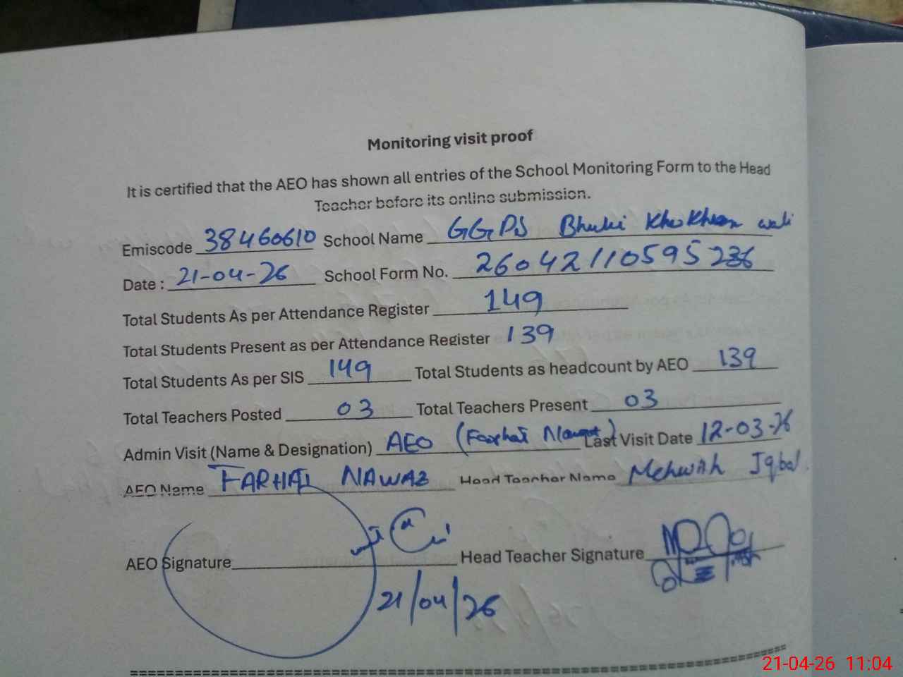 | EMIS Code: 38460610 | Name of School: GGPS BHIKHI KHOKHARAN WALI | |||