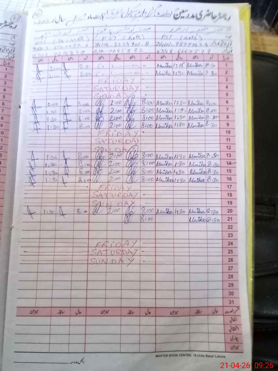 | 36**** | Sa**** Ha**** | PST Science/Maths | Regular | 0 | 0 | 0 | 0 | 0 | 0 | 0 | 0 | 0 | Absent (Un-Authorized) |
