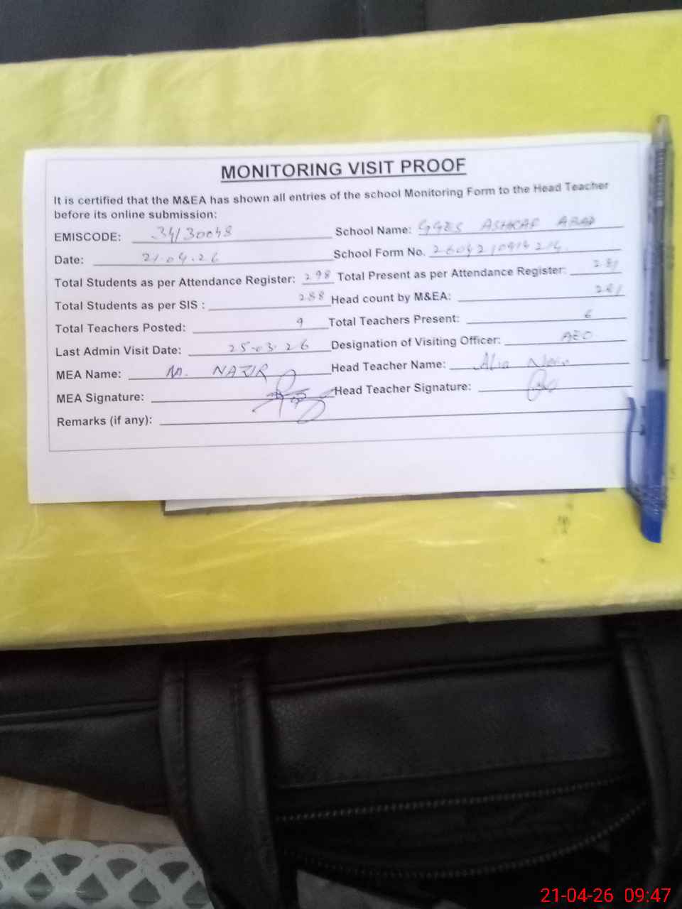 | EMIS Code: 34130048 | Name of School: GGES ASHRAF ABAD | |||