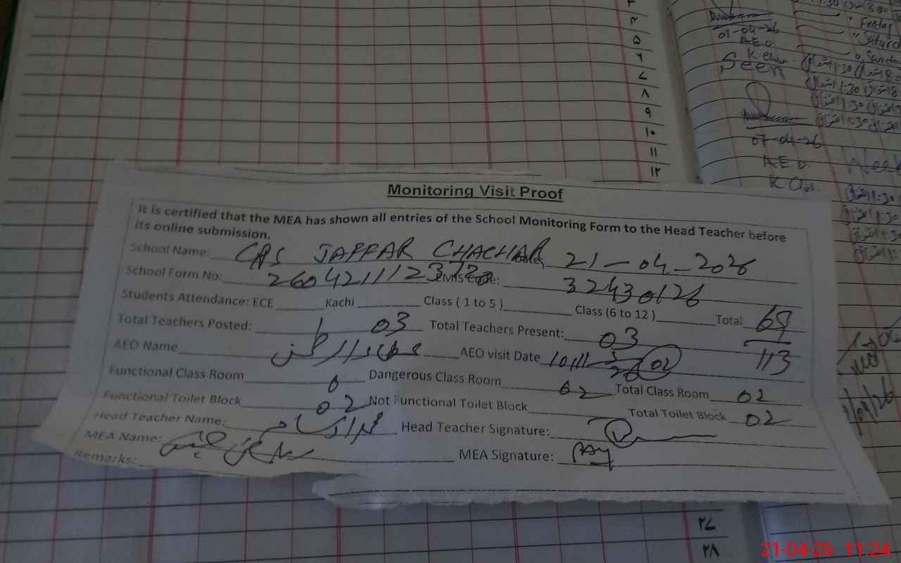 | EMIS Code: 32430126 | Name of School: GPS JAFFAR CHACHAR | |||