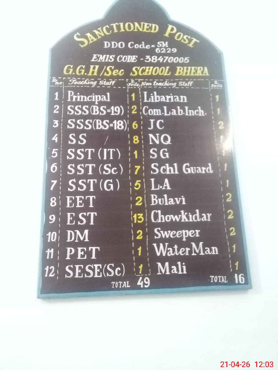 | EMIS Code: 38470005 | Name of School: GGHSS BHERA | |||