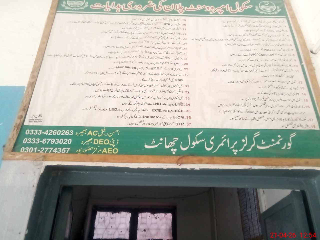 | District: SARGODHA | Tehsil: BHERA | Markaz: HAZOOR PUR - FEMALE | Level: Primary | |