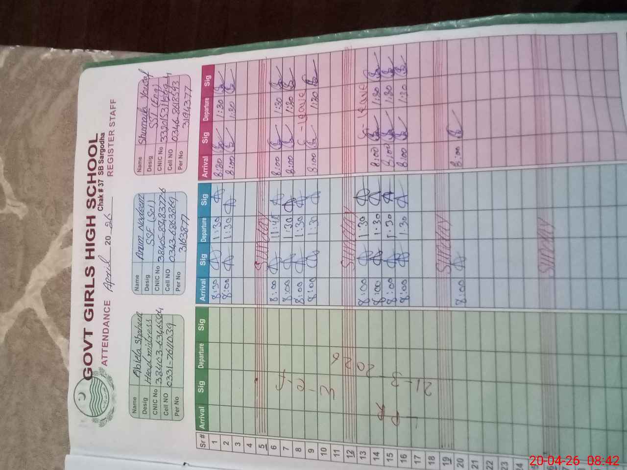 | CNIC | Full Name | Designation | R/C | Absence During Last Calender Month |
