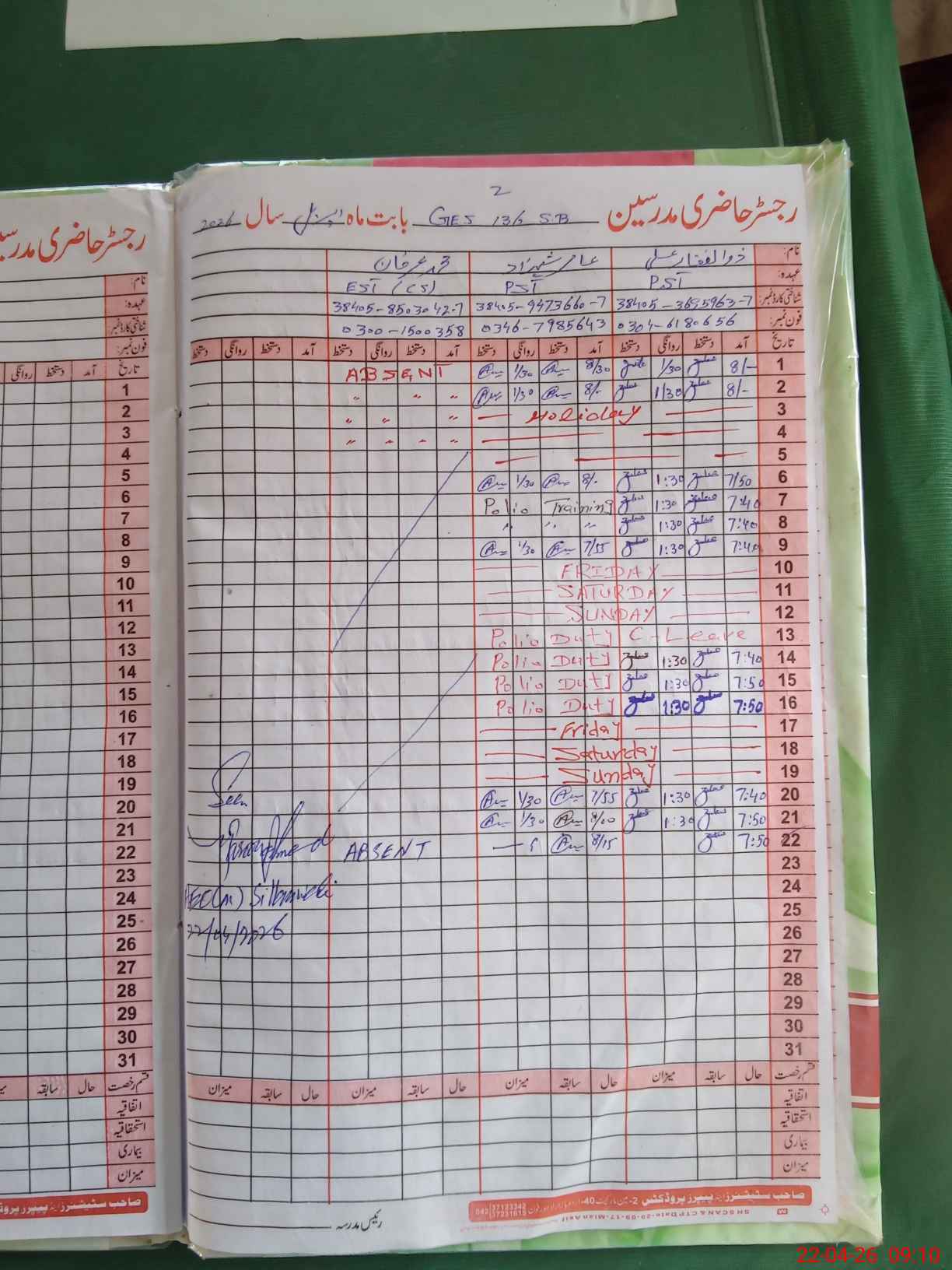 | EMIS Code: 38440111 | Name of School: GES CHAK NO.136 SB Sillanwali | |||