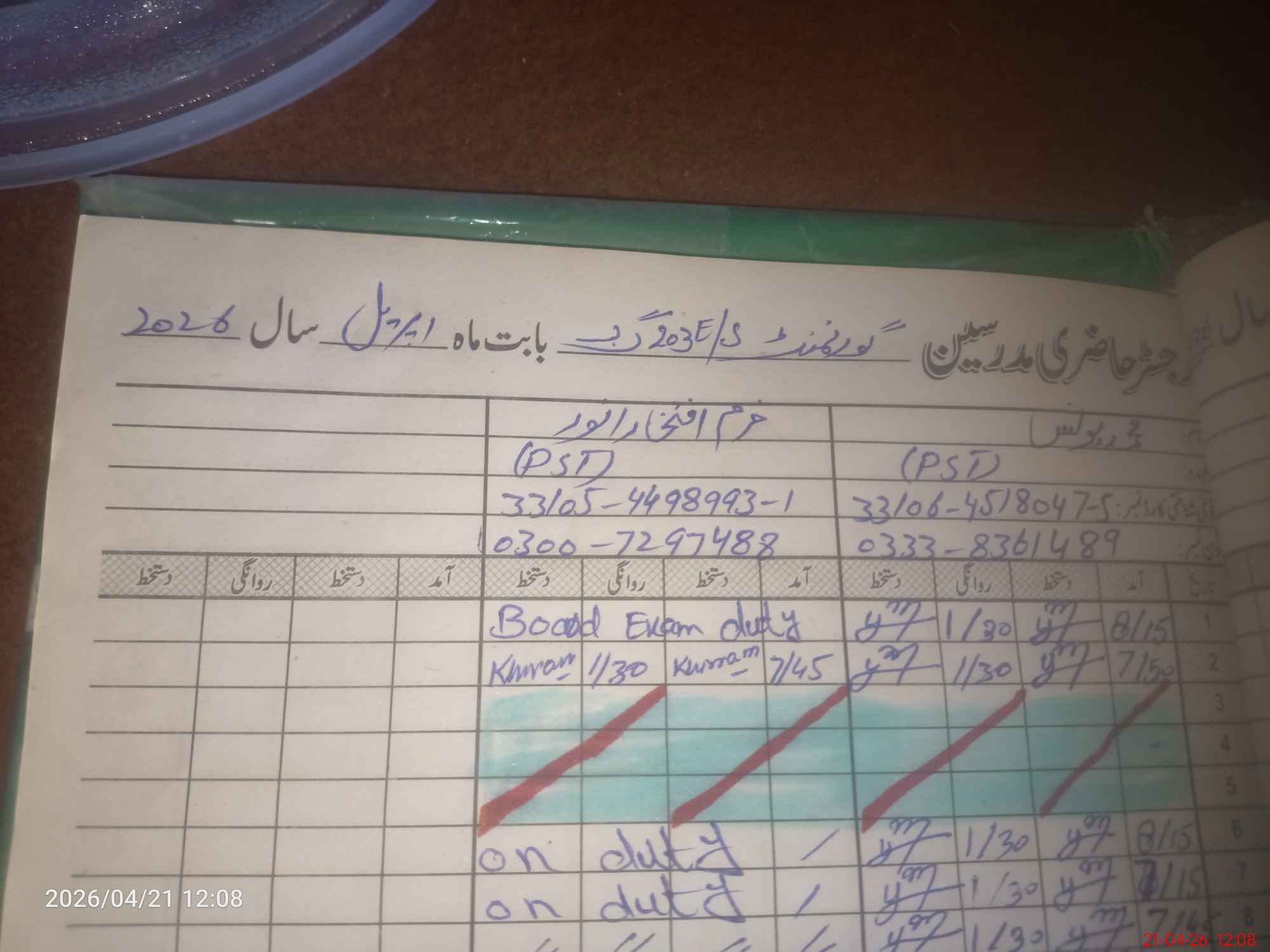 | CNIC | Full Name | Designation | R/C | Absence During Last Calender Month |