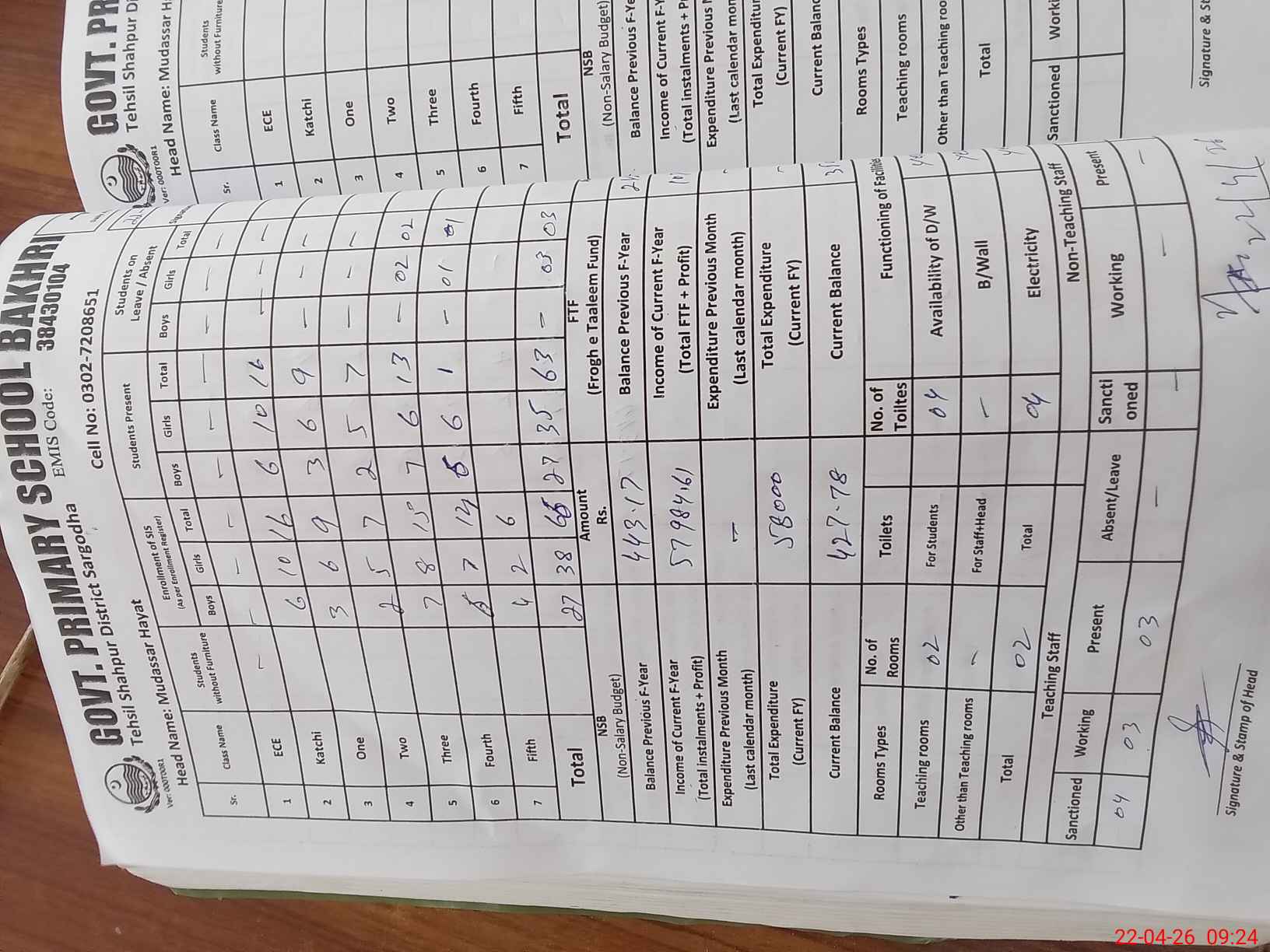 | Name: MU**** HA**** Designation: (School Headmaster's/Headmistress's) PST Phone/Cell Number: 03**** |