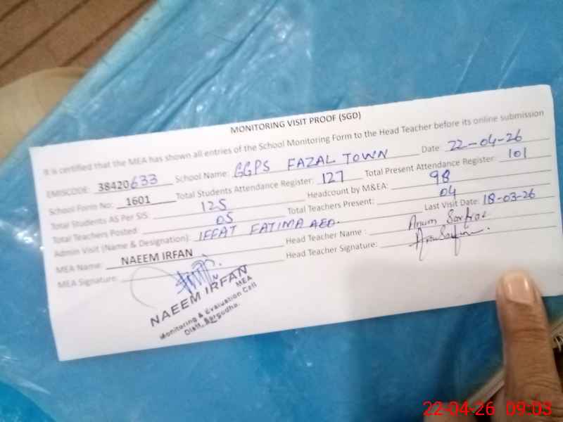 | EMIS Code: 38420633 | Name of School: GGPS FAZIL TOWN | |||