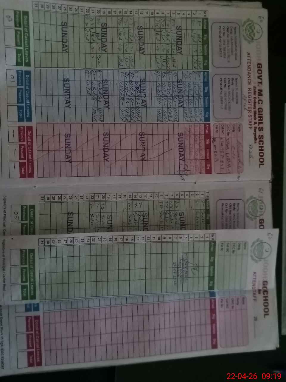 | 38**** | Ab**** Sh**** | PST Arts | Regular | 0 | 0 | 0 | 0 | 0 | 0 | 0 | 0 | 0 | Exam Duty |