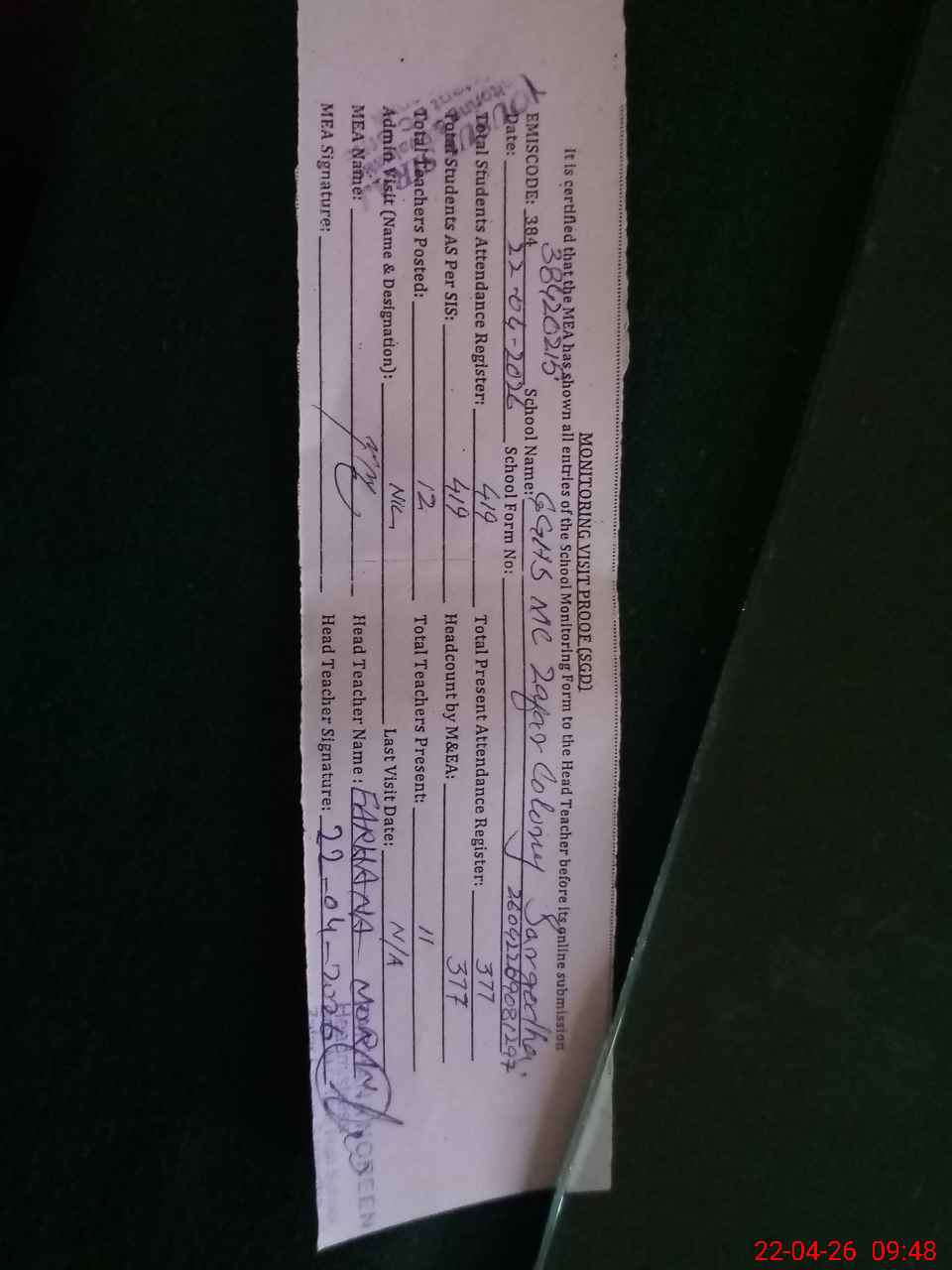 | EMIS Code: 38420215 | Name of School: GGHS MC ZAFAR COLONY SARGODHA | |||
