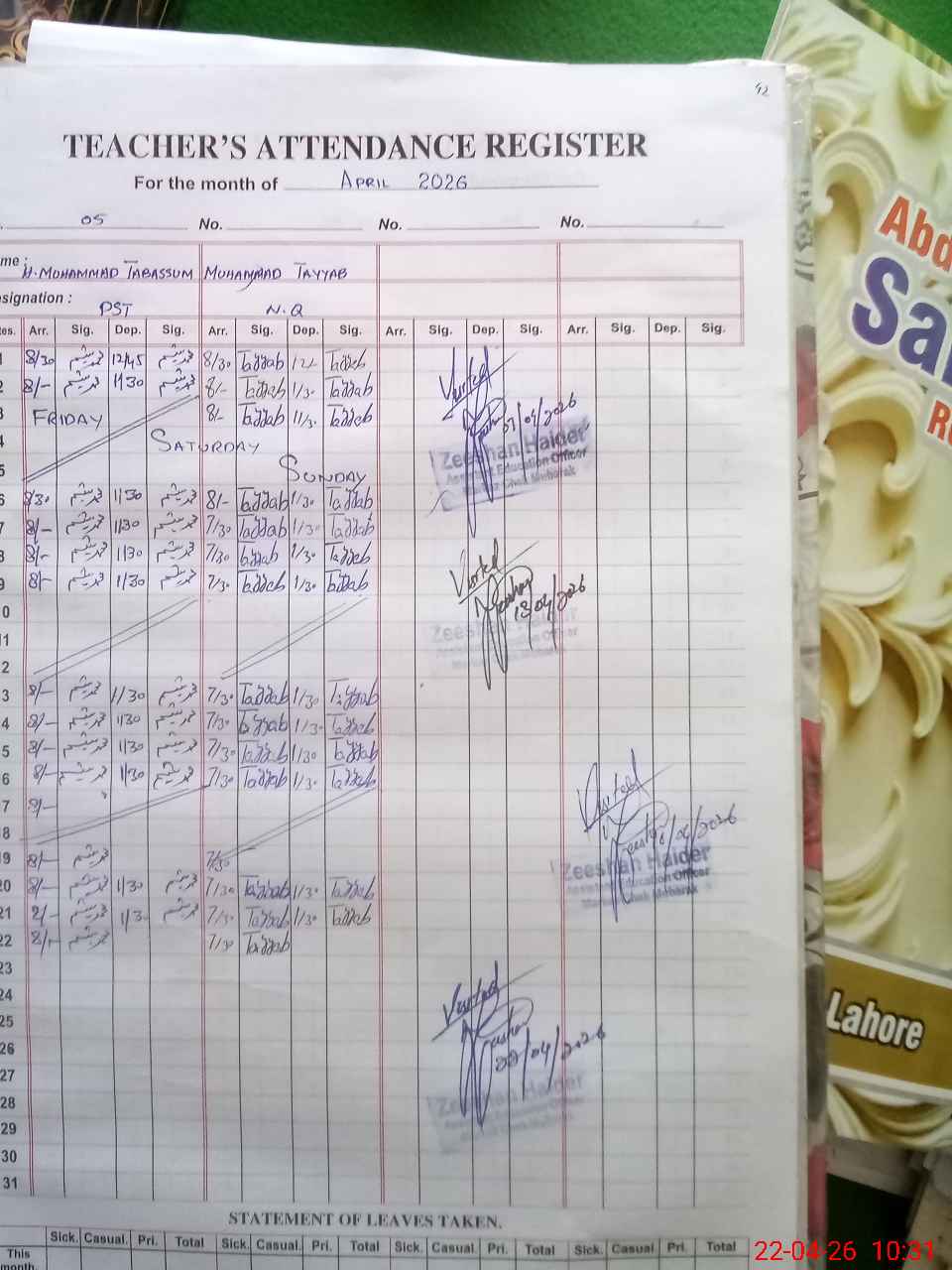 | Name: AB**** QA**** Designation: (School Headmaster's/Headmistress's) PST Phone/Cell Number: 03**** |