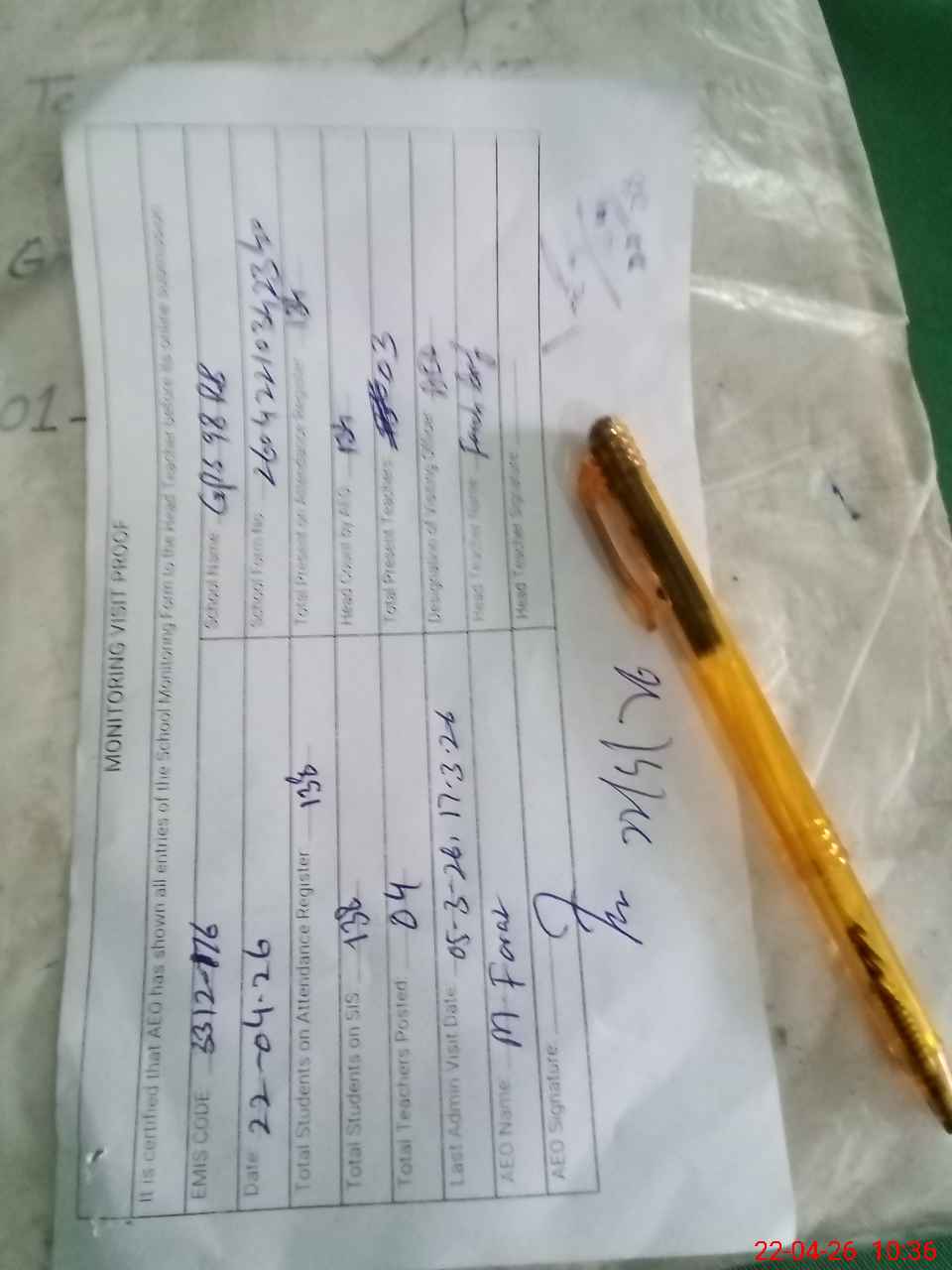 | EMIS Code: 33120176 | Name of School: GPS CHAK 98 RB | |||