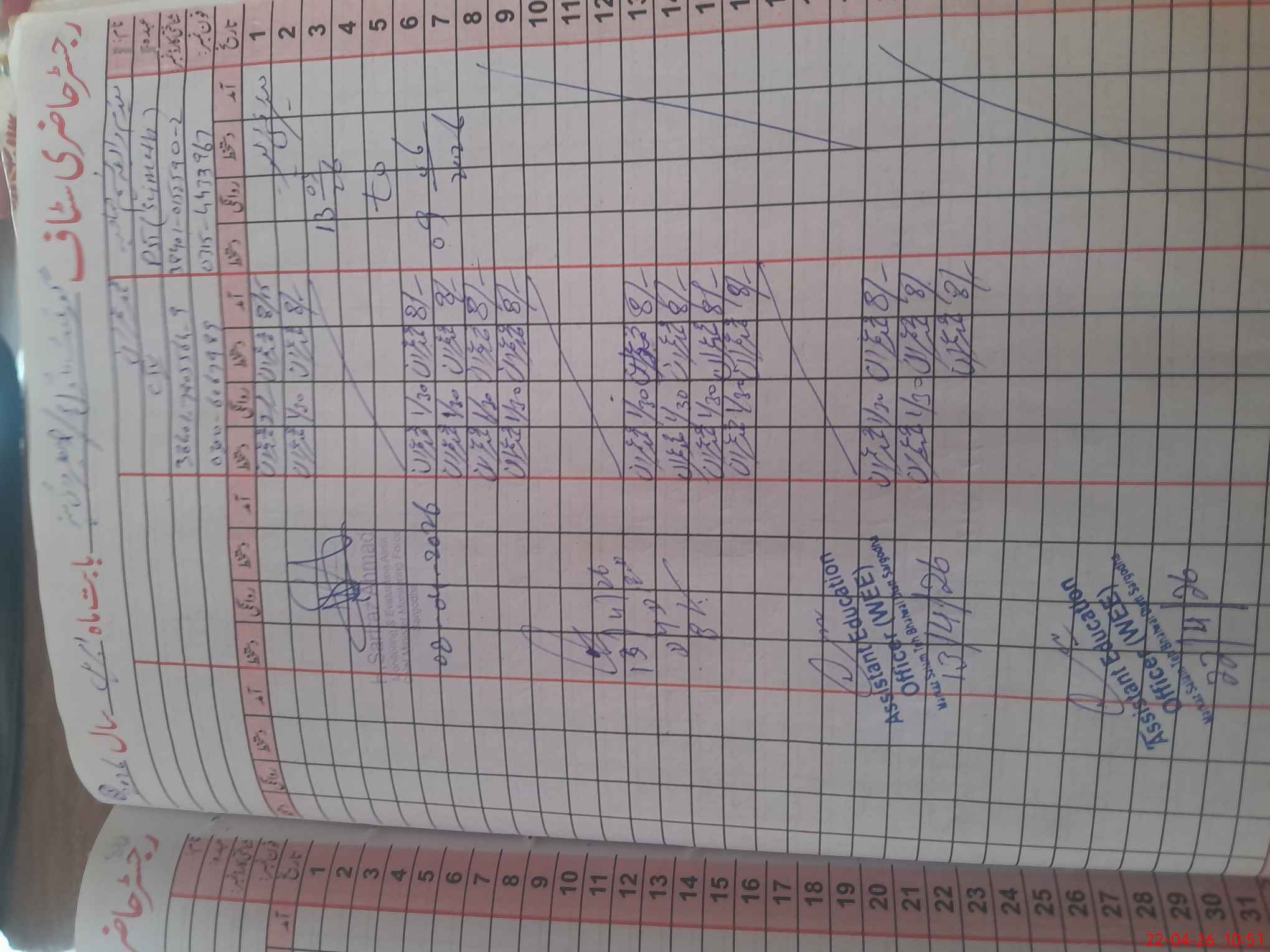 | Name: RA**** ME**** EL**** Designation: (School Headmaster's/Headmistress's) PST Phone/Cell Number: 03**** |